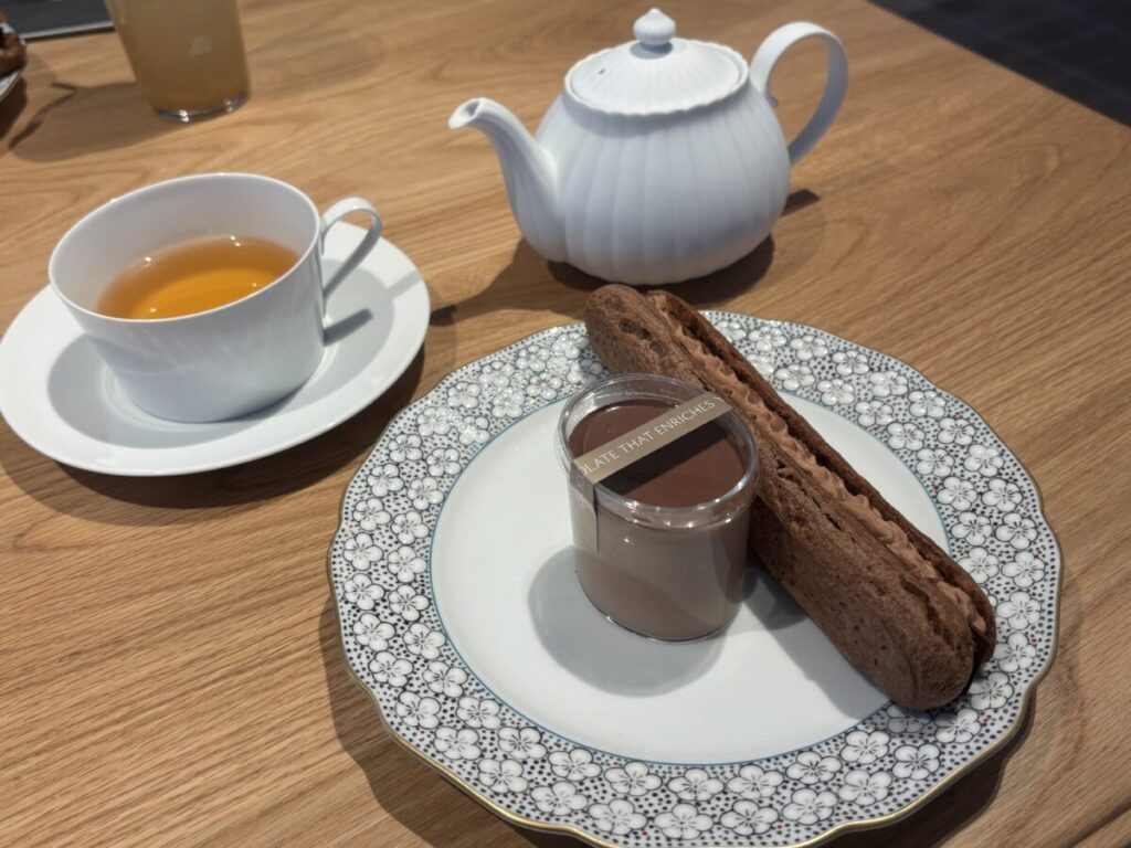 今回はエクレアとチョコプリンのセット(1,200円・税抜)に、初めてのカカオティー(600円・税抜)を。 チョコレートの香りがふんわり漂って、本当に美味しいの。